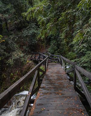 A bridge over a stream in the forest of Northern California