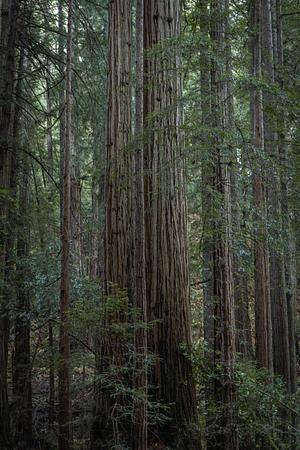 A stand of redwood trees stands in Northern California
