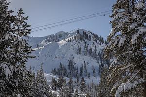 The iconic KT-22 at Palisades Tahoe blanketed with snow
