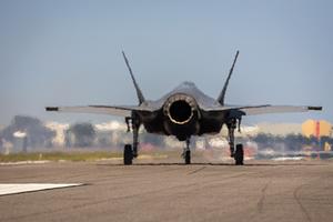 An Air Force F-35 taxing