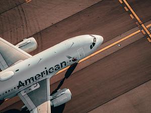 An American Airlines plane taxiing on a late summer day at Boston's Logan International Airport