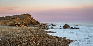 Sunset at Lucy Vincent beach on a rocky cold winter evening