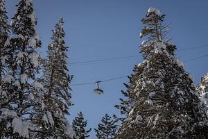 A tram moved passed trees at Palisades Tahoe