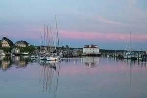 Vibrant colors in the sky and on the water in Menemsha Harbor at sunset